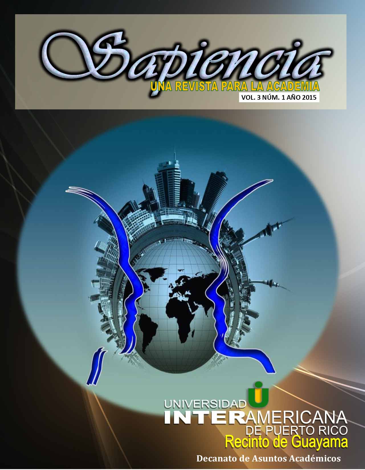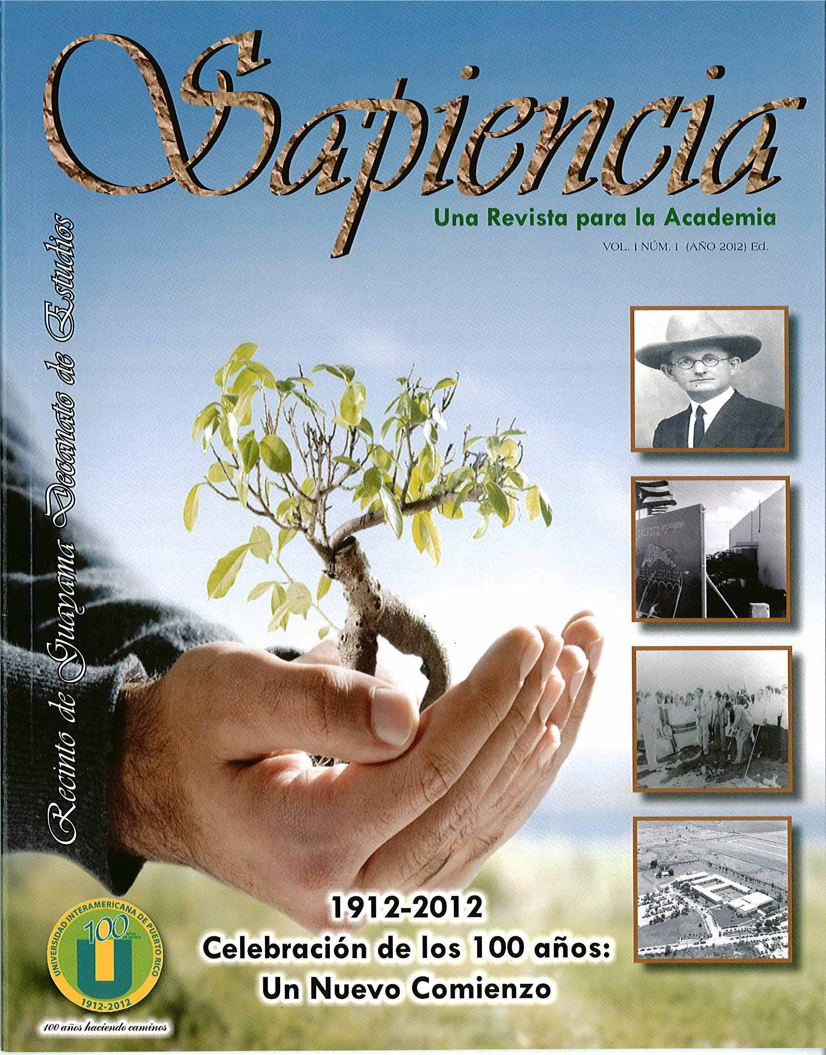 La celebración de los 100 años de la Universidad Interamericana de Puerto Rico, el Decanato de Estudio del Recinto de Guayama emprende un nuevo proyecto académico de enfoque interdisciplinario con la publicación de Sapiencia: una revista para la académia. Su finalidad es ofrecer un espacio de análisis, investigación y reflexión para la divulgación de diversos escritos en las áreas de administración de empresas, educación, ciencias, tecnología, salud y otras disciplinas humanísticas.