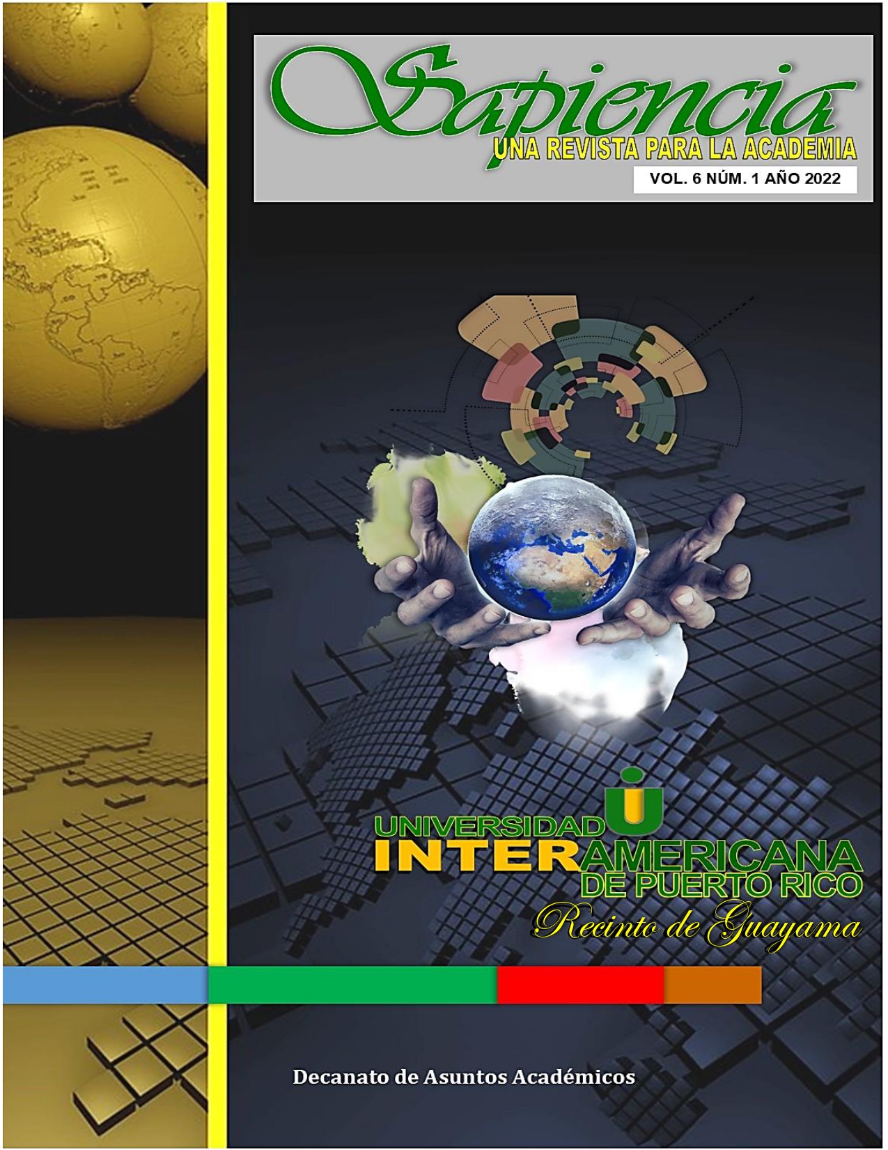 UIPR-Recinto de GuayamaEditora Arte Gráfico - El Decanato de Asuntos Académicos de la Universidad Interamericana de Puerto Rico, Recinto de Guayama, invita a profesionales, educadores e investigadores, a someter artículos, ensayos, investigaciones y reseñas originales, para su publicación en la revista académica Sapiencia: una revista para la academia. El propósito de este proyecto es ofrecer un foro académico nacional e internacional, cuyo enfoque interdisciplinario fomente la investigación y la divulgación de diversos saberes en las áreas de Administración de Empresas, Educación, Ciencias, Tecnología, Salud y otras disciplinas humanísticas.